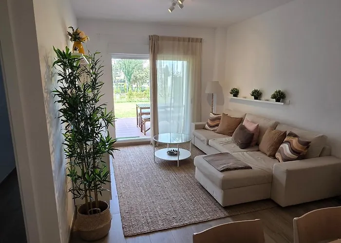 The 70 m² Ginva - Costa Ballena & Jardines De Majadales Chipiona apartment is located around 10 minutes' drive from the Camarón-La Laguna Beach and 4.5 km from Regla Beach. This spacious apartment also has a terrace overlooking the garden.